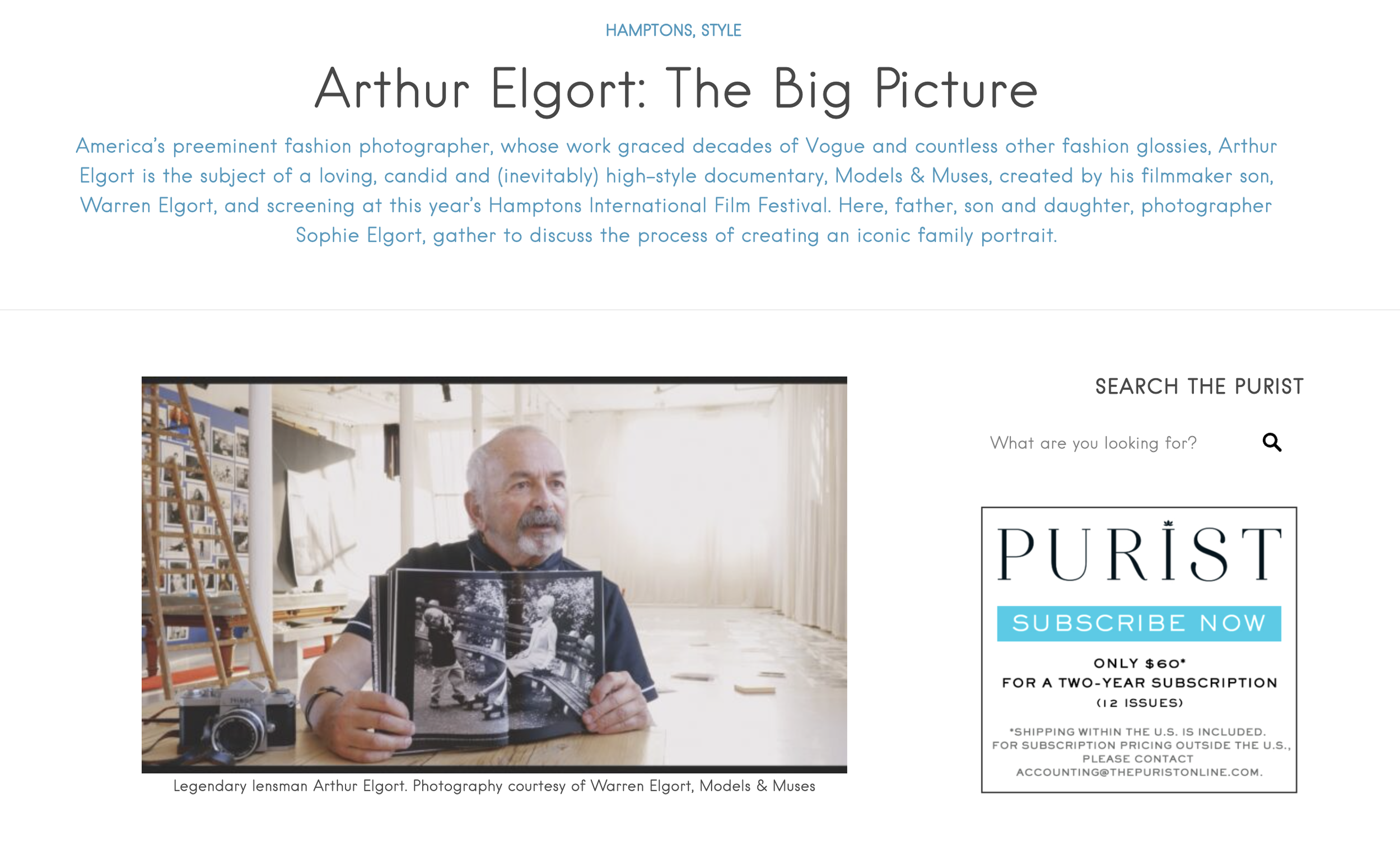 In this intimate and visually rich documentary, filmmaker Warren Elgort turns the camera on his father, legendary fashion photographer Arthur Elgort, whose candid, movement-driven style transformed the pages of Vogue and redefined the look of modern fashion photography. Told through unprecedented archival footage, iconic Vogue shoots, and heartfelt interviews with collaborators like Anna Wintour, André Leon Talley and Linda Evangelista, Arthur Elgort: Models & Muses captures the spontaneity, humor, and genius behind Arthur's work. As Warren uncovers the man behind the camera, the film becomes both a celebration of a creative legacy and a tender portrait of a father through the eyes of his son.